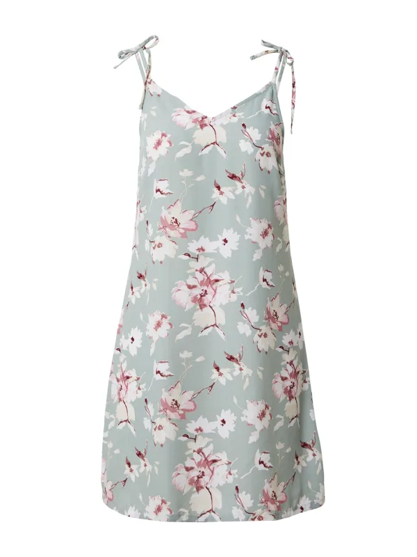 Design: Gevoerde zoom/rand, Rechte zoom, Om te knopen/binden, Uitgesneden rug; Materiaal: Gerecycled materiaal; Halstype: V-hals; Motief: Bloemenprint; Soort bandjes: Spaghettibandjes; Extra's: All-over patroon, Lichte stof; Lengte: Kort/mini; Pasvorm: Normale pasvorm; Armlengte: Mouwloos