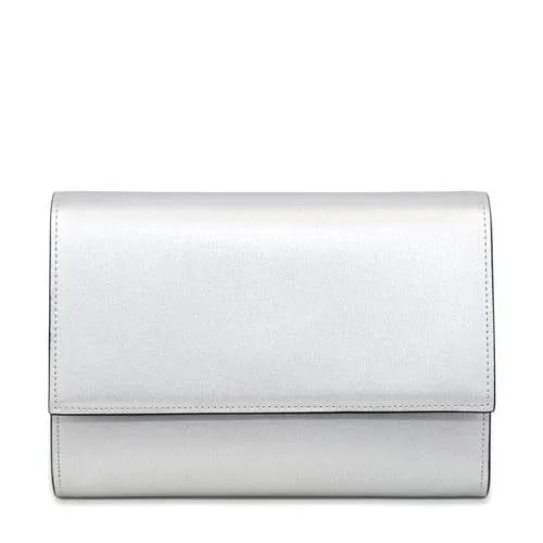Clutch Jackie voor dames van het merk Abrazi. De clutch is een veelzijdig, draagbaar item. De tas heeft een afneembare schouderband. Binnenin de clutch bevindt zich een spiegeltje en een vak met ritssluiting. Clutch Jackie sluit met een magneetsluiting en heeft een zilveren kleur.