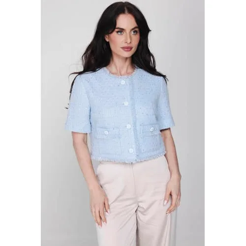 Accentil cropped blazer met wol lichtblauw met pailletten