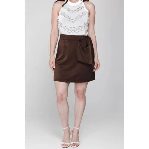 Accentil satijnen A-lijn rok donkerbruin