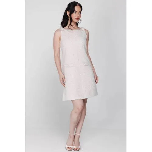 Val op in alle eenvoud met de Accentil Lexi Dress in beige. Deze korte jurk combineert een tijdloos silhouet met subtiele glans, waardoor de look verzorgd en feestelijk oogt zonder te druk te worden. Het mouwloze ontwerp met ronde hals laat schouders mooi vrij, terwijl de geweven structuur en pailletten zorgen voor een verfijnde textuur. Ideaal voor speciale gelegenheden waar je graag verzorgd voor de dag komt.Verzorgde details in een rustige kleur Korte glitterjurk in effen beige, makkelijk te combineren met je favoriete schoenen en accessoires Mouwloos model met rechte schouderlijn voor een elegante, open look Gemaakt van wol, dat prettig aanvoelt en lang in model blijft Geweven stof met pailletten en textuur voor een subtiele, feestelijke glans Blinde ritssluiting aan de achterzijde voor een strak en rustig rugpand Voorzakken die de jurk een moderne, praktische touch geven Korte lengte, ideaal voor gelegenheden in de avond of een feestelijke borrelVoor feestelijke momenten en verzorgde outfitsDeze jurk past goed bij etentjes, feestjes of een avond uit. Met een blazer erover oogt de look netter, zonder dat je aan bewegingsvrijheid inlevert. Door de rustige beige kleur staat de jurk mooi met zowel neutrale als opvallende sieraden.Accentil, aandacht voor afwerkingAccentil staat voor doordachte damesmode met oog voor detail. De afwerking, keuze van materialen en pasvorm spelen altijd een belangrijke rol, zodat je kledingkast gevuld is met items waar je vaak naar grijpt.Een geschikte keuze voor momenten waarop je graag verzorgd en zelfverzekerd voor de dag wilt komen.