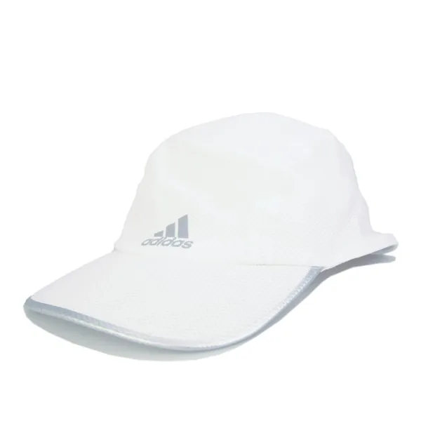 Adidas AEROREADY Runner Mesh Cap in white - silver.- Hook-and-loop back strap.- Pre-curved brim.- Moisture-absorbing AEROREADY sweatband.- Reflective details.- One size fits most.- Shell: 82% Polyester 18% Elastane. Sweatband: 100% Polyester. Lining: 100% Polyester. Machine washable.- Ref: FK0837