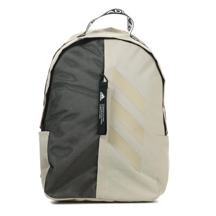 Adidas Classic 3- Stripes Backpack in beige.- Padded adjustable shoulder straps.- Front zip pocket.- Side water bottle pocket.- Iconic 3-Stripes.- Volume: 26.5 L- Main material: 100% Polyester (Recycled). Lining: 100% Polyester. Padding: 100% Polyethylene.- Ref: FT8764Measurements are intended for guidance only