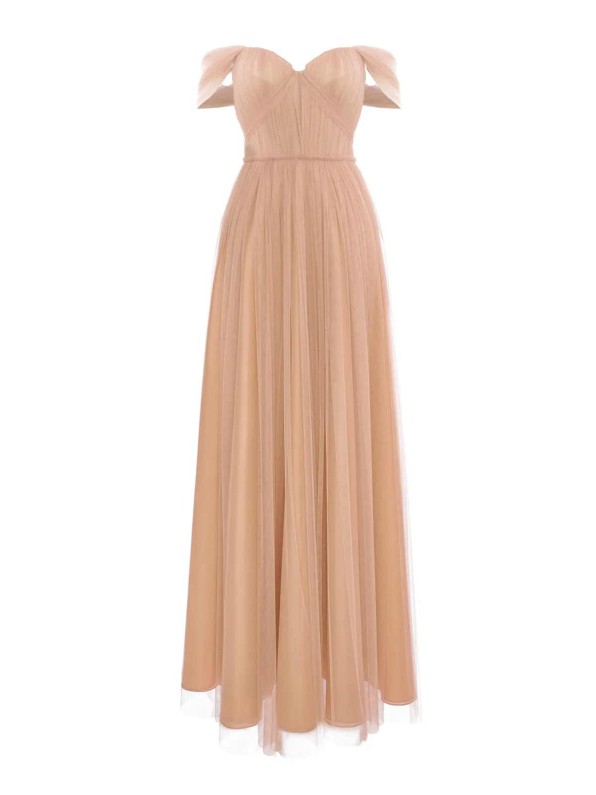 Materiaal: Satijn; Halstype: Carmen hals; Motief: Effen; Soort bandjes: Normale bandjes; Details: Gedrapeerd; Lengte: Lang/maxi; Pasvorm: Normale pasvorm; Armlengte: Mouwloos
