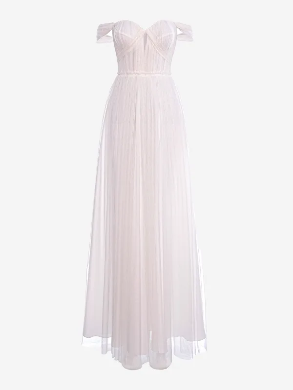 Materiaal: Satijn; Halstype: Carmen hals; Motief: Effen; Soort bandjes: Normale bandjes; Details: Gedrapeerd; Lengte: Lang/maxi; Pasvorm: Normale pasvorm; Armlengte: Mouwloos
