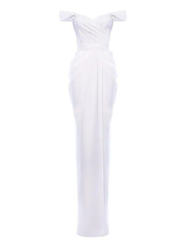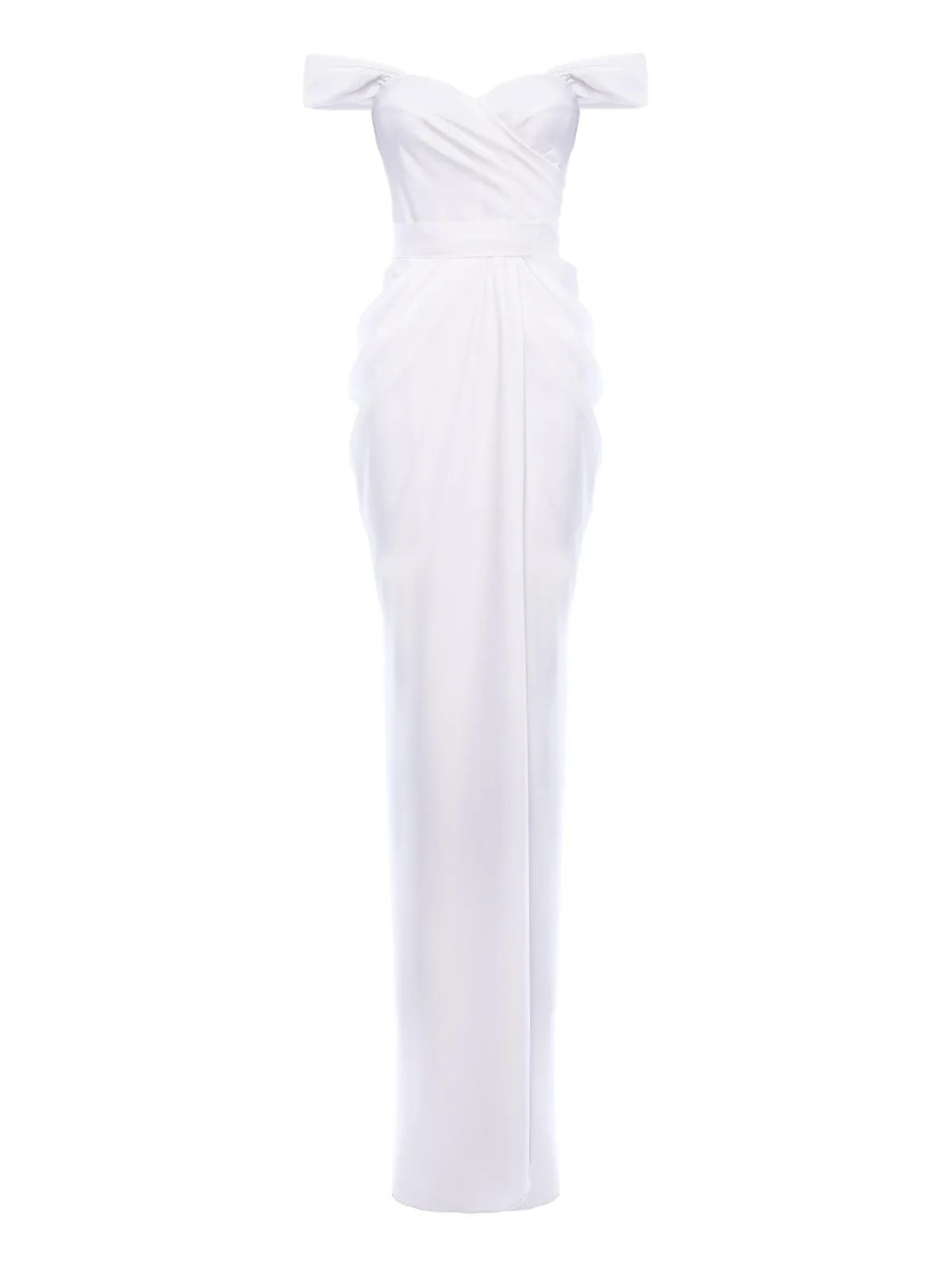 Materiaal: Satijn; Halstype: Carmen hals; Motief: Effen; Soort bandjes: Normale bandjes; Details: Gedrapeerd; Lengte: Lang/maxi; Pasvorm: Normale pasvorm; Armlengte: Mouwloos