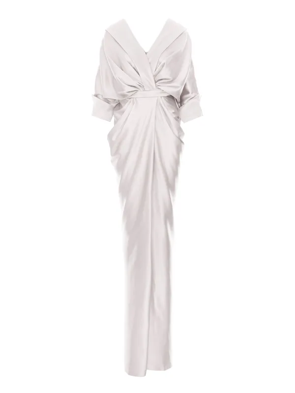 Materiaal: Satijn; Halstype: Carmen hals; Motief: Effen; Soort bandjes: Normale bandjes; Details: Gedrapeerd; Lengte: Lang/maxi; Pasvorm: Normale pasvorm; Armlengte: Driekwart mouw