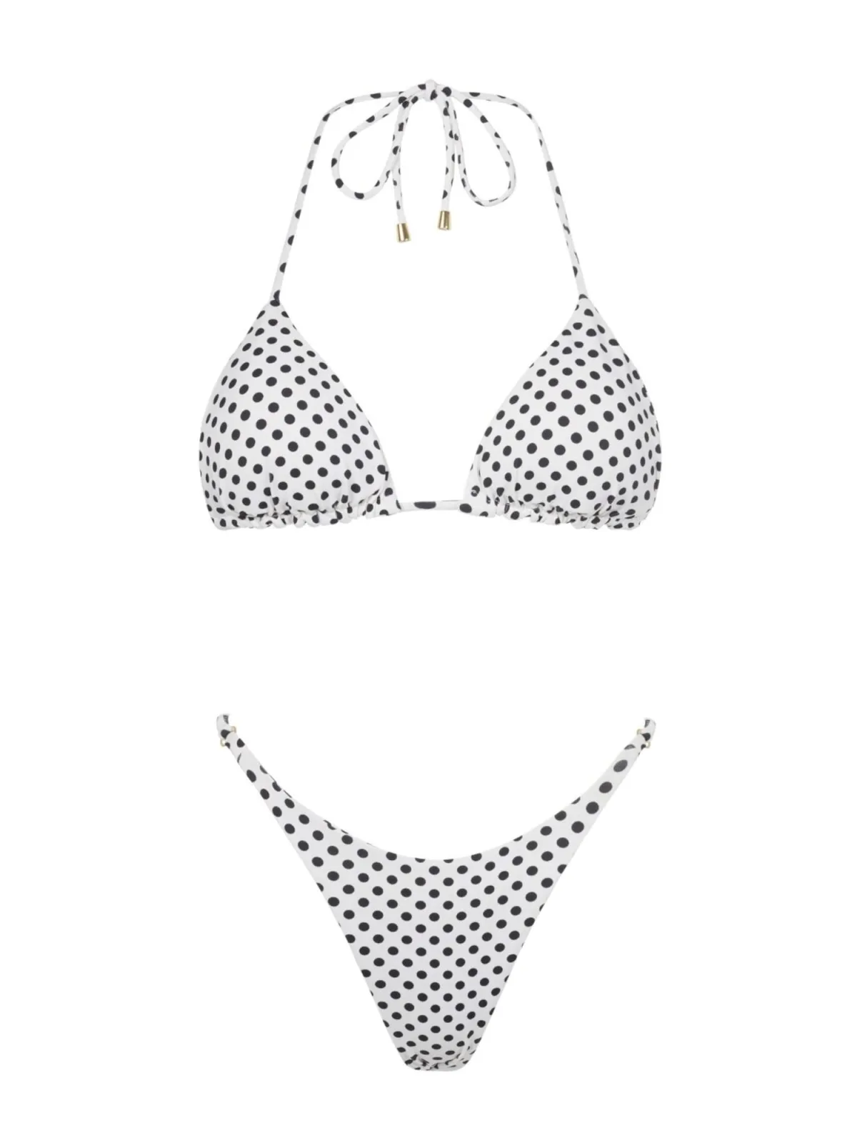 Cup soorten: Uitneembare cups; Soort bandjes: Normale bandjes; Bh/bikini type: Triangel; Beugel: Zonder beugel; Motief: Gestippeld; Broekvorm: Tanga; Details: Sierstenen