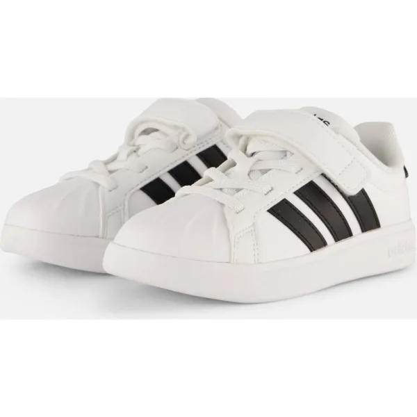 Of ze nu rondrennen in het park of lekker thuis zitten, met deze kinderschoenen van Adidas blijven kids comfortabel en stijlvol. De rubberen loopzool biedt grip op de grond terwijl ze bewegen, en een synthetisch bovenwerk met een rubberen neuskap maakt ze extra robuust. Dankzij de elastische veters en klittenband zijn ze gemakkelijk aan en uit te trekken, zodat jouw kind in een oogwenk klaar is voor avontuur.