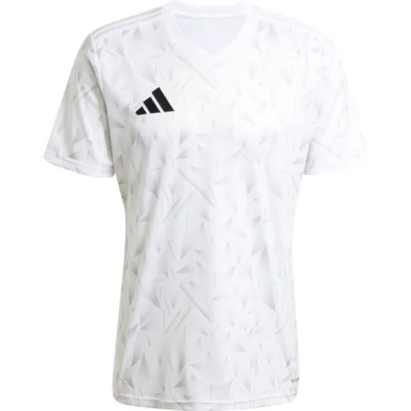 100% Polyester. Ontwerp: Geometrisch, Logo, Bedrukt, Streepdetail. Hals: Ribbel, V-hals. Mouwtype: Korte mouwen. Stoftechnologie: Aeroready, Ademend. Geschikt voor: Voetbal, Training. Duurzaamheid: Gemaakt van gerecycled materiaal. S: 36 in. M: 39 in. L: 42,5 in. XL: 46,5 in. XXL: 51 in.
