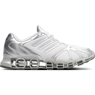 De Mega Ghostride schoenen van adidas draaien helemaal om de kracht van transformatie. Het design vernieuwt de Y2K-trend en haalt inspiratie uit de opvallende maximalistische stijl van dat tijdperk. Het sportieve bovenwerk van mesh is afgewerkt met matte metallic 3-Stripes en een frame voorop. Een glanzende overlay van TPU op de achterkant werkt 'm opvallend af. Het Megaride-design en de Bounce-middenzool bieden het comfort en de attitude die je van adidas Originals gewend bent. Normale pasvorm Vetersluiting Bovenwerk van textiel en synthetisch materiaal Voering van textiel