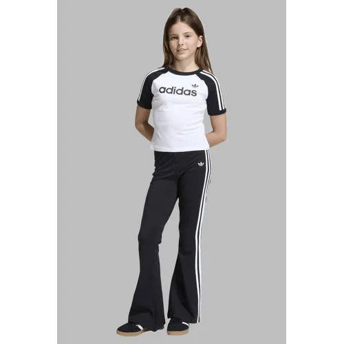 Kids flared legging van adidas Originals. De 3-Stripes Flared legging is waar klassiek adidas erfgoed moderne flair ontmoet. Deze voor kids ontworpen legging is ideaal voor alledaagse avonturen, of het nu tijd is om te spelen of voor een casual uitje.Deze legging is uitgevoerd in zachte katoenen jersey met elastaan voor een aansluitende pasvorm die meebeweegt en de hele dag comfortabel blijft. De iconische 3-Stripes langs de zijkanten voegen een vleugje sportieve elegantie toe dat nooit uit de mode raakt. Het geborduurde Trefoil-logo verwijst naar een iconische legacy, waardoor hij een must is voor de garderobe van een jonge trendsetter. Met nadruk op comfort en stijl is deze legging bedoeld om individualiteit uit te drukken en zelfvertrouwen te bevorderen. In combinatie met een casual T-shirt of een sportief topje zal dit stuk een favoriet in de collectie van je kind worden.