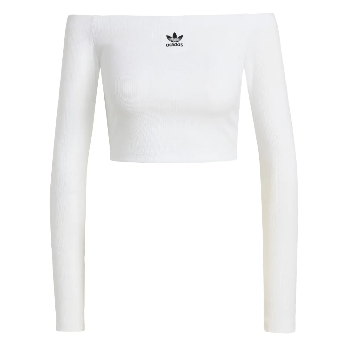Design: Rechte zoom, Strapless/off-shoulder; Materiaal: Jersey; Halstype: Carmen hals; Motief: Effen; Details: Borduursels; Extra's: Label borduurwerk, Op staal naden, Voelt zacht aan; Pasvorm: Slanke pasvorm; Armlengte: Lange mouw; Lengte: Korte pasvorm