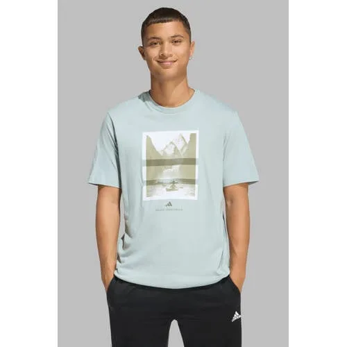 Ga voor een frisse, sportieve look met dit mintgroene adidas heren T-shirt uit de adidas Sportswear lijn. De outdoor kayaking graphic op de voorkant geeft direct energie aan je outfit en verwijst naar de liefde voor het buitenleven. Dankzij de zachte single jersey van 100% katoen voelt het T-shirt soepel aan op de huid en is het ideaal voor dagelijks gebruik, van streetwear tot een ontspannen vrije dag.Frisse graphic en comfortabel draaggevoel Gemaakt van 100% katoen, single jersey, voor een zachte touch en comfortabel draaggevoel Opvallende rubberen zeefdruk met outdoor kayaking print die de voorkant extra accent geeft Mintgroene kleur zorgt voor een frisse, moderne uitstraling in je garderobe Korte mouwen en ronde hals voor een klassieke, makkelijk te combineren pasvorm Geschikt voor streetwear, casual dagen en lichte sportieve activiteiten Wordt geleverd als 1 T-shirt, handig als favoriet basisitem in je kastCasual stijl met een sportieve twistCombineer dit T-shirt met een jogger en sneakers voor een relaxte streetwear look, of draag het met een korte broek op een warme dag. De graphic geeft net wat extra karakter, terwijl de rechte snit en de ronde hals zorgen voor een vertrouwde, makkelijke fit.Sportieve heritage van adidasadidas is al decennialang een vaste waarde in de sportwereld. Het merk staat bekend om sportkleding en schoenen die comfort en performance combineren met een moderne stijl. De adidas Sportswear lijn sluit daarop aan en biedt toegankelijke items die je moeiteloos in je dagelijkse outfits draagt.Een T-shirt dat jouw liefde voor outdoor en sport subtiel laat zien.