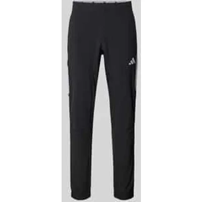 Trainingsbroek van adidas Training voor heren;Elastische materiaalmix;Slim fit;Model 'Tech';Logoprint;Elastische band;Elastische pijpboorden;Binnenbeenlengte bij maat M: 74 cm
