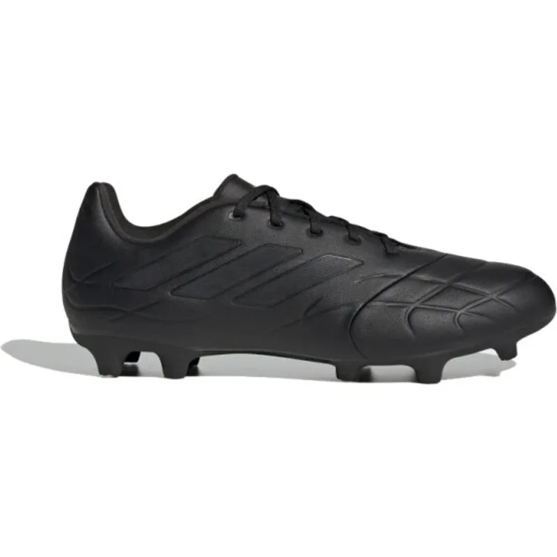 Adidas Copa Pure.3 Firm Ground Zwarte Voetbalschoenen De Adidas Copa Pure.3 Firm Ground-voetbalschoenen zijn gemaakt voor de spelers die op zoek zijn naar ultiem comfort en controle op het veld. Met deze schoenen ben je klaar om de tegenstander te domineren en de wedstrijd te winnen. De Copa Pure.3 is gemaakt van hoogwaardig leer dat zich perfect naar je voet vormt. Dit biedt niet alleen comfort, maar ook controle over de bal. Het bovenwerk van de schoen heeft ook reliëfzones die zorgen voor extra grip op de bal en precisie tijdens het schieten en passen. De voetbalschoen heeft een stevige buitenzool met een noppenconfiguratie die zorgt voor maximale grip op stevige ondergronden. Adidas Copa Pure.3 Firm Ground-Voetbal Schoenen Dit betekent dat je snel kunt bewegen en scherpe bochten kunt maken zonder uit te glijden. De Copa Pure.3 heeft een gevoerde kraag en tong die zorgen voor extra comfort en ondersteuning rond de enkels. De