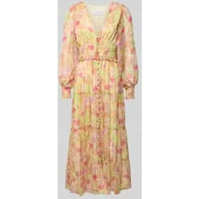 Cocktailjurk van Adlysh;Chiffon;Getailleerd model;Midi-jurk;V-hals;Ballonmouwen;Knoopsluiting;Laagjeslook;Ruglengte bij maat S: 107 cm;Borstomvang bij maat S: 32 cm;Mouwlengte bij maat S: 60 cm