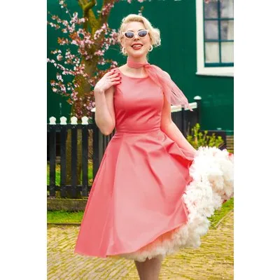 "It's almost impossible to watch a sunset and not dream!'' Adriana is exclusief verkrijgbaar bij Topvintage en met liefde door onze eigen in-house designers ontworpen. Ze is uitgevoerd in een stevige maar soepel vallende, luchtige katoenmix met een lichte stretch in een betoverende, koraalroze kleur. * Swing model: kan gecombineerd worden met een petticoat * It has pockets! * Blinde rits achterzijde * Exclusief bij Topvintage verkrijgbaar * Gorgeous Julia Fiore (Fiorevanil) is 1,70 m; haar accessoires zijn haar eigen vintage treasures