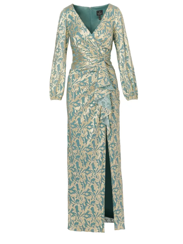 Design: Beenopening, Rug rits; Type sluiting: Ritssluiting; Halstype: V-hals; Details: Volant, Gedrapeerd; Extra's: All-over patroon; Lengte: Lang/maxi; Pasvorm: Normale pasvorm; Armlengte: Lange mouw