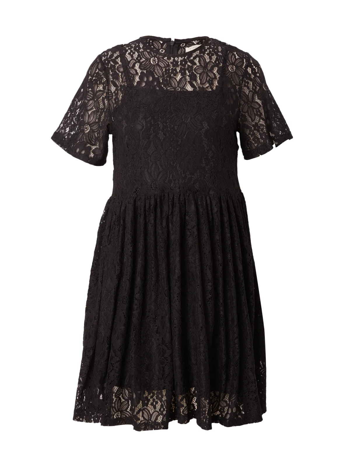Design: Gevoerde zoom/rand, Flare, Met onderjurk, Rug rits; Type sluiting: Ritssluiting; Halstype: Ronde hals; Motief: Effen; Details: Kant, Plooien; Extra's: Licht transparant, Op staal naden; Lengte: Kort/mini; Pasvorm: Normale pasvorm; Armlengte: Kwartmouw