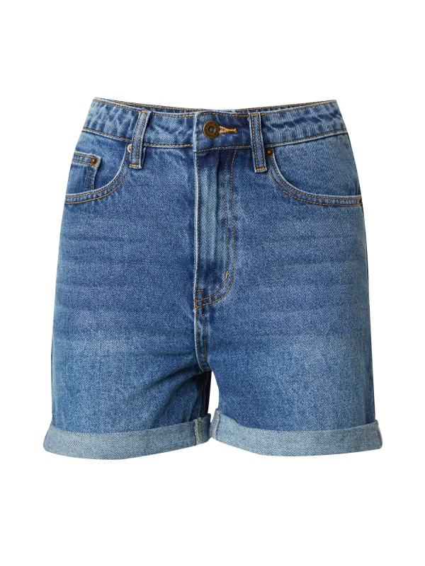 Design: Omgeslagen zoom, Ritssluiting, 5-pocket-style; Type sluiting: Ritssluiting; Materiaal: Denim; Motief: Effen; Extra's: Contrasterende naden, Gewassen effect, Riemlussen; Wassing: Light washed; Lengte: Kort/mini; Pasvorm: Regular; Taillehoogte: Mid waist
