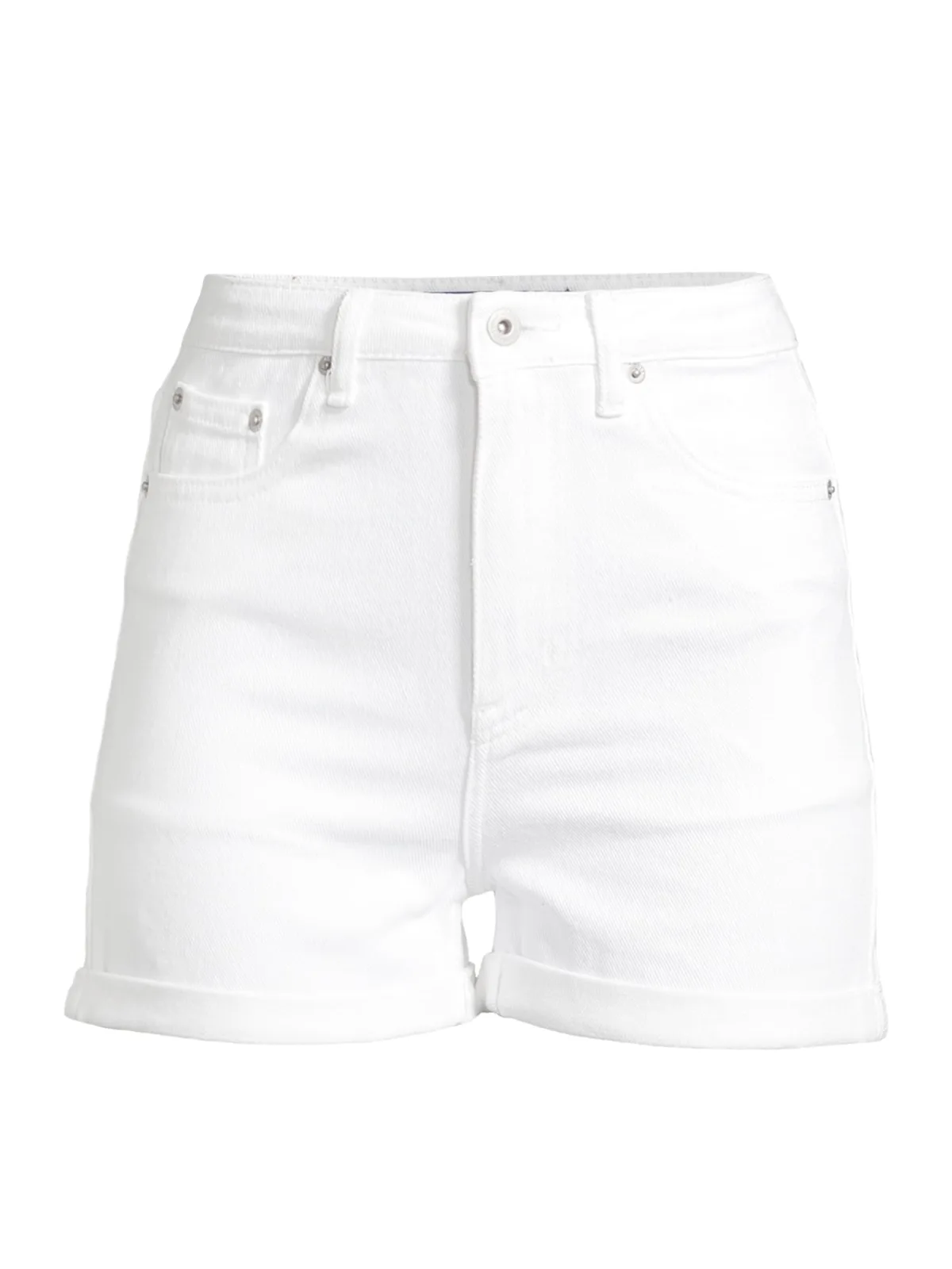 Design: Omgeslagen zoom, Ritssluiting, 5-pocket-style; Type sluiting: Knoopsluiting; Materiaal: Denim; Motief: Effen; Extra's: Studs, Label patch/label flag, Riemlussen; Wassing: Colored denim; Lengte: Kort/mini; Pasvorm: Regular; Taillehoogte: Mid waist