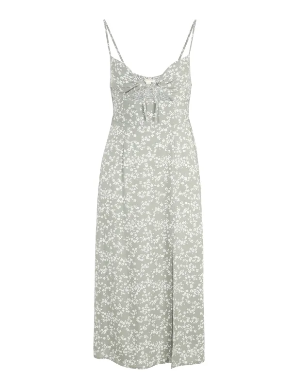 Design: Beenopening, Diepe snit/decolleté, Om te knopen/binden, Elastische inzetstukken; Materiaal: Viscose; Motief: Bloemenprint; Soort bandjes: Spaghettibandjes; Details: Cut-outs; Extra's: Verstelbare bandjes, All-over patroon, Gladde stof; Lengte: 3/4 lengte; Pasvorm: Normale pasvorm; Armlengte: Mouwloos