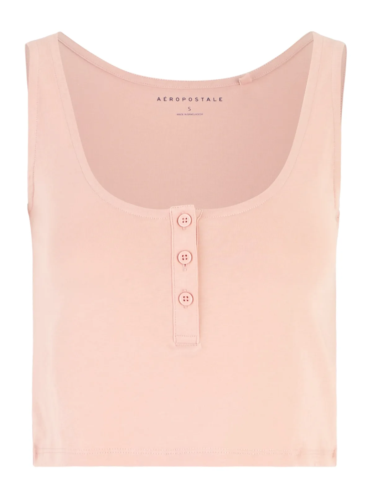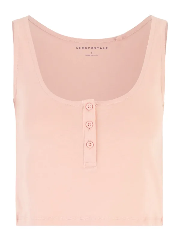 Design: Gevoerde zoom/rand, Knop placket; Materiaal: Jersey; Halstype: Henley hals; Motief: Effen; Soort bandjes: Normale bandjes; Extra's: Op staal naden, Voelt zacht aan; Pasvorm: Normale pasvorm; Armlengte: Mouwloos; Lengte: Korte pasvorm