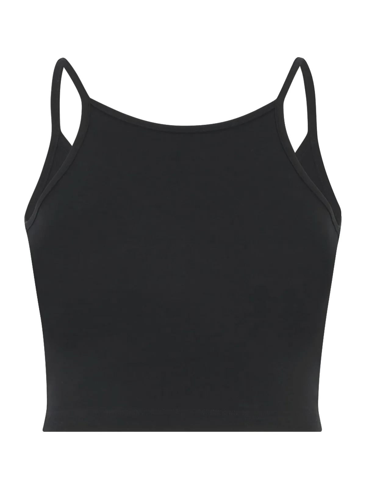 Design: Gevoerde zoom/rand, Ingelegde kraag; Materiaal: Jersey; Halstype: Ronde hals; Motief: Effen; Soort bandjes: Spaghettibandjes; Extra's: Op staal naden, Voelt zacht aan; Pasvorm: Slanke pasvorm; Armlengte: Mouwloos; Lengte: Korte pasvorm