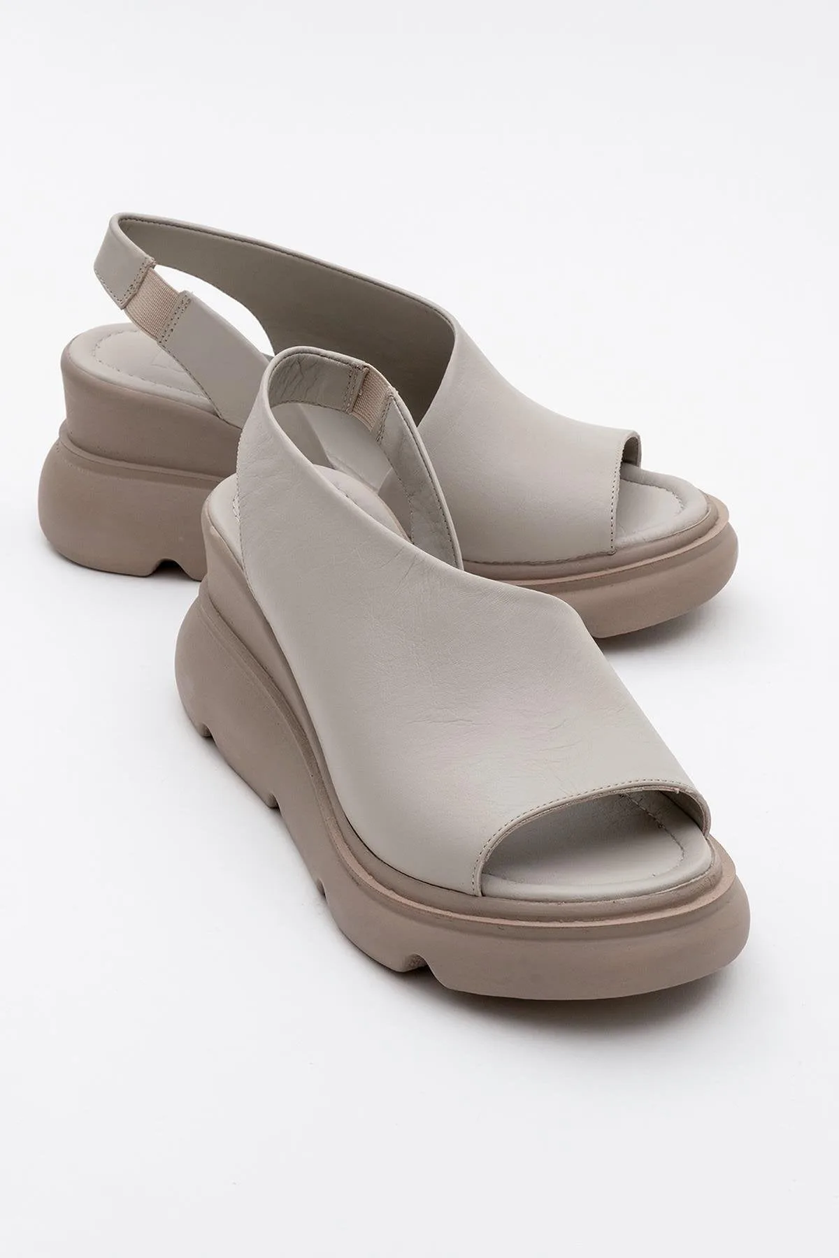 Platform slide sandaal van premium Italiaans nappaleer met 7cm sleehak en 3cm voorplatform. Elastische hielband met gespsluiting voor optimale pasvorm. Handgemaakt in Turkije met zacht lederen voering.