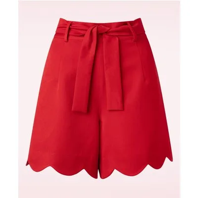 De zomer komt er aan, tijd om je beentjes te showen in deze 50s Ahoy Scallop Shorts in Rood! Geen zin in een jurk, maar te warm voor een broek? Hello, cute shorts! Dit retro modelletje draag je hoger in de taille en heeft korte geschulpte pijpjes. Uitgevoerd in een stevige maar luchtige, lipstickrode stof met een hele lichte stretch die perfect is voor het aankomende seizoen. ''Life's too short, to not wear shorts!'' * Hoog taille model * Afneembare strikband * Zijwaartse steekzakken * Korte schulpte pijpjes * Rits- en haaksluiting achterzijde * Onze stunning redhead Miss Stella Starbrite is 1,63 m