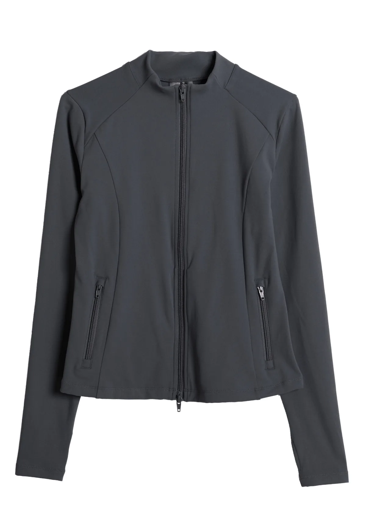 Design: Raglanmouwen, Staande kraag, Combideelbare ritssluiting, Ritszakken aan de zijkant; Type sluiting: Ritssluiting; Voering: Niet gevoerd; Materiaal: Gerecycled materiaal; Halstype: Opstaande kraag; Motief: Effen; Type jas: Trainingsjas; Extra's: Op staal naden; Details: Met hoge stormkraag, Ritszakken aan de zijkant; Pasvorm: Slanke pasvorm; Armlengte: Lange mouw; Lengte: Korte pasvorm