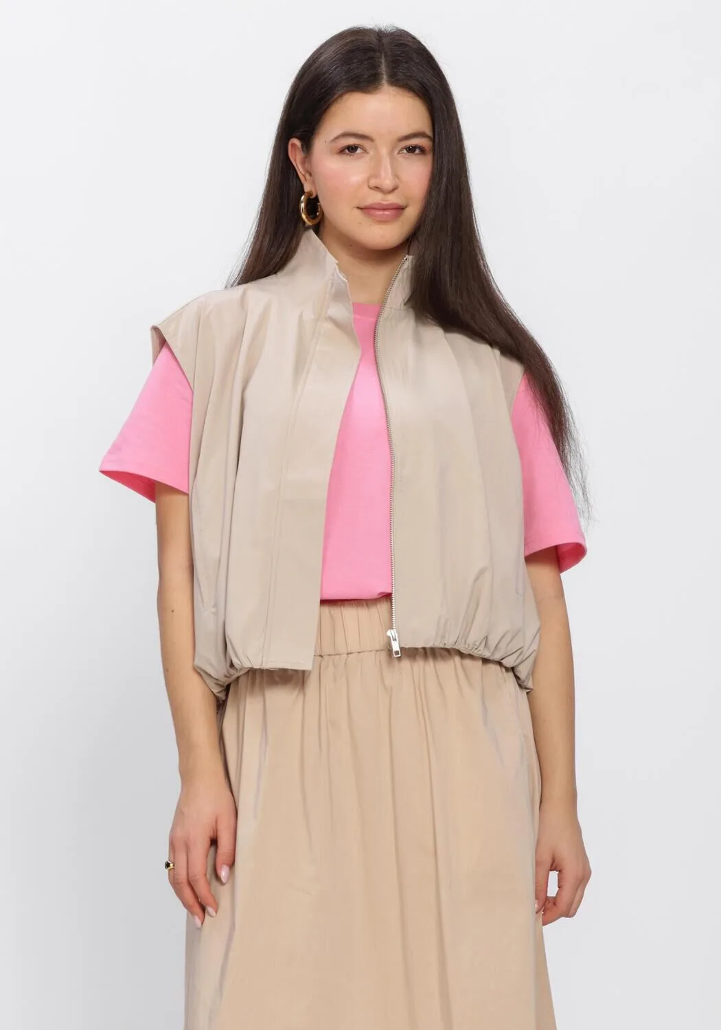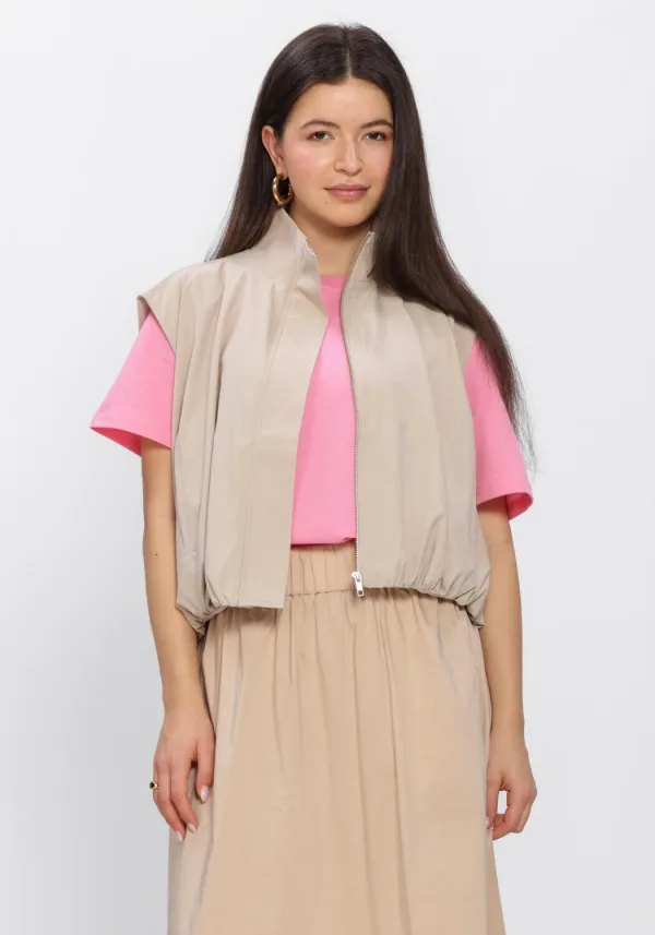 Ontdek de veelzijdigheid van de LOWEN WAISTCOAT van AIMEE THE LABEL. Deze zandkleurige bodywarmer is perfect voor de lente en zomer. Draag 'm tijdens een ontspannen picknick in het park of een gezellige wandeling langs het strand. Combineer de waistcoat met een luchtige witte blouse en een lichte jeans voor een moeiteloze, stijlvolle look. De subtiele kleur maakt het eenvoudig om te mixen en matchen met je favoriete lente- en zomergarderobe. Voeg een paar comfortabele sneakers toe en je bent klaar voor een dag vol avontuur en plezier.