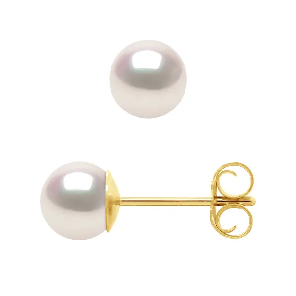 Oorbellen - Yellow Gold 750 duizendste (18K) - Akoya gekweekte parels van gecertificeerde Japans - Round 5 - 6 mm - LUSTER excellent / EAST witroze - kinderwagens System - Een paar siliconen kinderwagens zullen worden aangeboden tegen deze aankoop - Wordt geleverd in een koffer met een certificaat van echtheid en een internationale garantie - Al onze juwelen zijn gemaakt in Frankrijk.