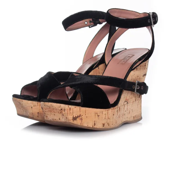 - Bij secretsales.nl kun je Alaia Cork wedge met zwart fluweel kopen voor slechts €200,00