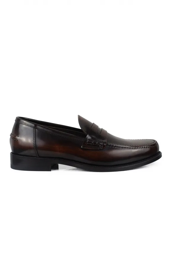 Loafers van glanzend bruin leer.100% kalfsleer.Leren zool.Handgemaakte schoenen.Gemaakt in Italië.