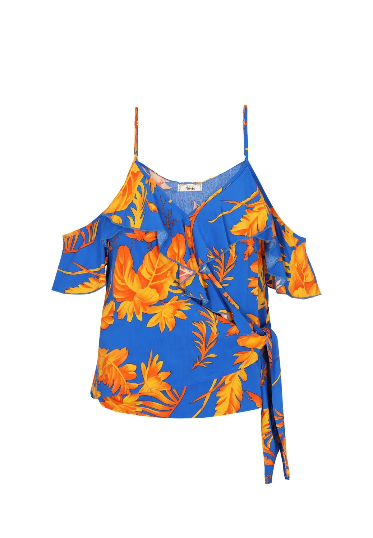 Blouse type: Wijde blouse; Design: Gevoerde zoom/rand, Strapless/off-shoulder; Materiaal: Viscose; Motief: Bloemenprint; Kraag: Zonder kraag; Details: Volant, Wikkel design; Extra's: All-over patroon, Op staal naden; Pasvorm: Normale pasvorm; Armlengte: Kwartmouw; Lengte: Normale lengte