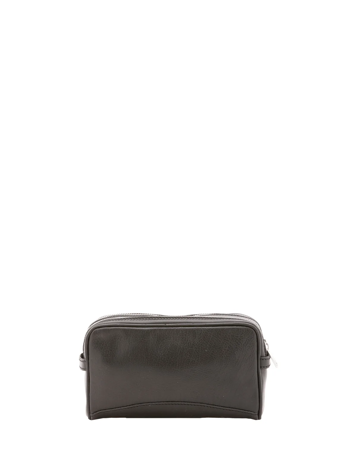 Unisex clutch tas met ritssluiting. één met binnenzakken met ritssluiting. afwezige externe zakken. ontbrekende schouderband. ontbrekend handvat. twee binnenvakken. extern materiaal. gevoerd met katoenen binnenkant. Afmetingen: 24x18x7 cm. Gemaakt in Italië