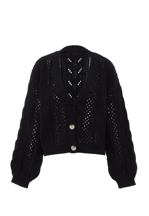 Design: Geribd ceintuurtje; Type sluiting: Knoopsluiting; Halstype: V-hals; Motief: Effen; Details: Mesh; Extra's: Voelt zacht aan; Pasvorm: Normale pasvorm; Armlengte: Lange mouw; Lengte: Korte pasvorm
