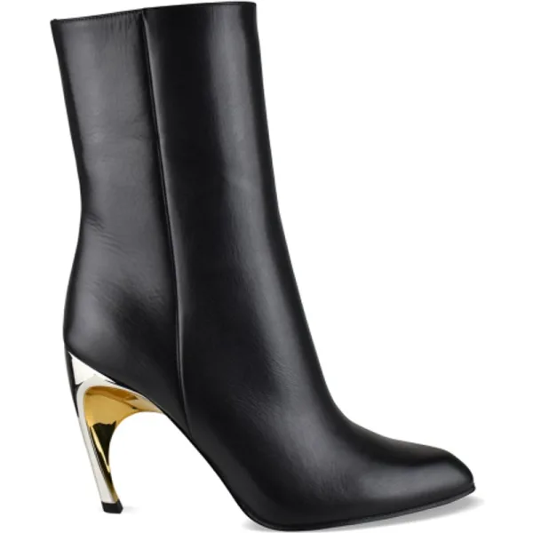 Alexander Mcqueen Armadillo enkellaarsjes van zwart leer.Zilverkleurige en goudkleurige tweekleurige hak.Ritssluiting aan de binnenkant.Puntige teen.Leren zool.Hakhoogte 9,5 cm.Made in Italy.