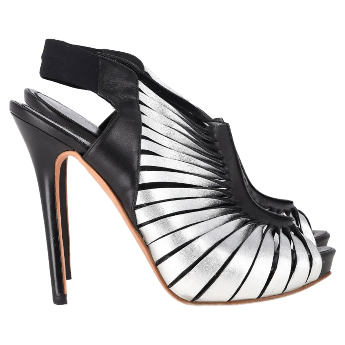 | Prijsgeschiedenis voor Alexander McQueen Peep Toe Slingback Hakken in Zilveren Leer | |