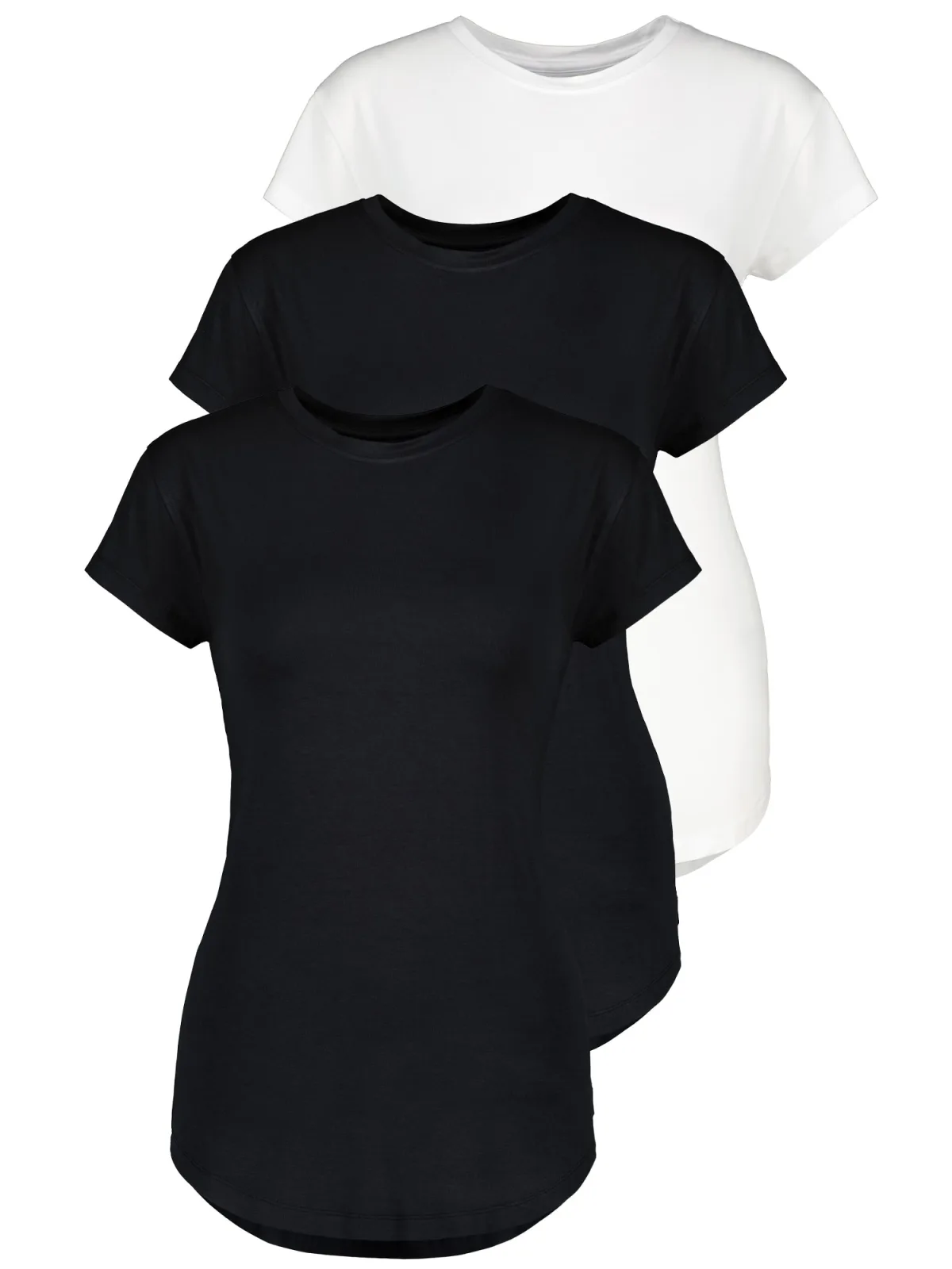 Design: Gevoerde zoom/rand; Materiaal: Jersey; Halstype: Ronde hals; Motief: Effen; Extra's: Op staal naden; Pasvorm: Slanke pasvorm; Aantal: 3 Pack; Armlengte: Kwartmouw; Lengte: Normale lengte
