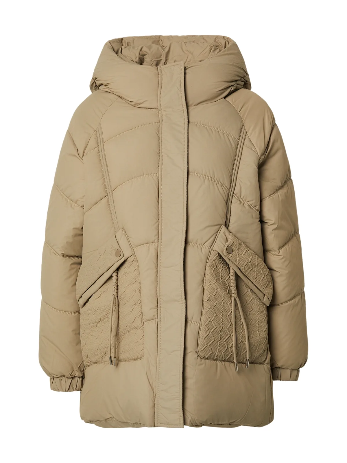 Design: Drukknopsluiting, Placket, Capuchon met opstaande kraag, Oversized, Verborgen rits; Type sluiting: Ritssluiting; Type jas: Gewatteerde jas; Voering: Warm gevoerd; Motief: Effen; Extra's: Stiksels, Op staal naden; Pasvorm: Wijde pasvorm