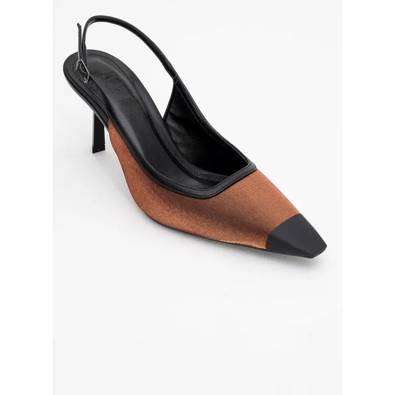 Een moderne slingback pump die opvallende details combineert met dagcomfort dankzij de verstelbare enkelband en puntige silhouet