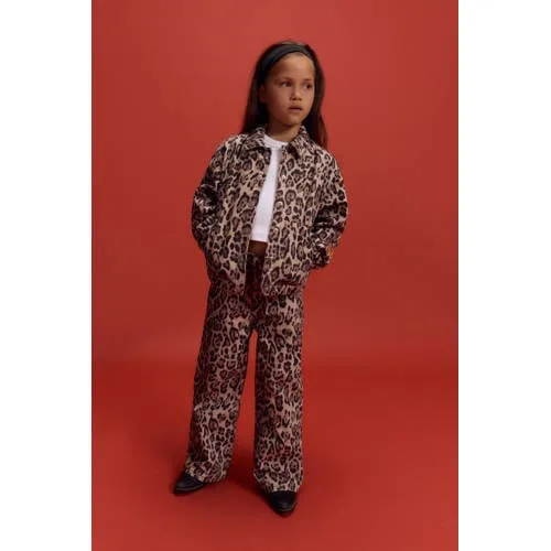 Alix Mini wide leg jeans met panterprint bruin