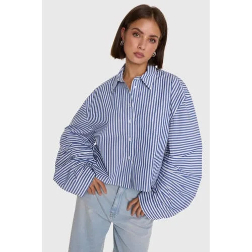 Gestreepte blouse van het merk Alix The Label. De blouse is gemaakt van een luxe katoenen sto en is ontworpen met een elegante ballonmouw voor een vrouwelijke uitstraling. Stofsamenstelling: 100% katoen Pasvorm: valt normaal. Twijfel je over de maat? Neem contact met ons op en we helpen je graag verder!