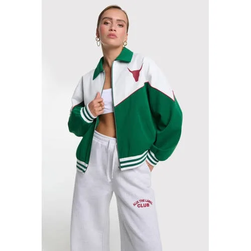 Val op met de frisse sportieve look van deze Alix the Label jas. De korte bomber uit de Rebel collectie komt in een groen/witte kleurstelling die direct opvalt, zonder drukke prints. De klassieke kraag en rechte mouwen houden het silhouet rustig, terwijl de contrast bies langs de boorden en rits zorgt voor een duidelijke, grafische lijn. Ideaal voor lentedagen waarop je iets lichts over je outfit wilt dragen.Details die de bomber bepalen Korte bomberstijl, perfect over een high waist jeans of rok Groen/witte kleur met effen basis en opvallende contrast bies Klassieke kraag en rechte mouwen voor een tijdloos model Voorzien van ritssluiting, handig om snel open en dicht te dragen Zakken voor, zodat je kleine essentials dicht bij je houdt Ongevoerd ontwerp, fijn voor het tussenseizoen Soepel materiaal met lichte stretch door het gebruik van elastaan Maatadvies: dit artikel valt normaal Onderhoud: niet wassen, niet in de droogtrommel, lauw strijkbaarCasual laagje voor het tussenseizoenDeze korte bomber is gemaakt voor lagen. Draag hem open over een T-shirt op een milde lentedag of rits hem dicht wanneer het wat frisser is. Het ongevoerde design houdt het licht en comfortabel, zodat je je makkelijk blijft bewegen in je dagelijkse routine.Alix the Label met een eigen stijlhandtekeningAlix the Label staat bekend om mode met een duidelijke signatuur. De collecties combineren een stoere, eigentijdse uitstraling met toegankelijke modellen die je gewoon elke dag kunt dragen. Deze jas past daar precies in, met een herkenbare stijl en doordachte details die lang meegaan in je garderobe.Een eigentijdse bomber die je garderobe een frisse, sportieve update geeft.