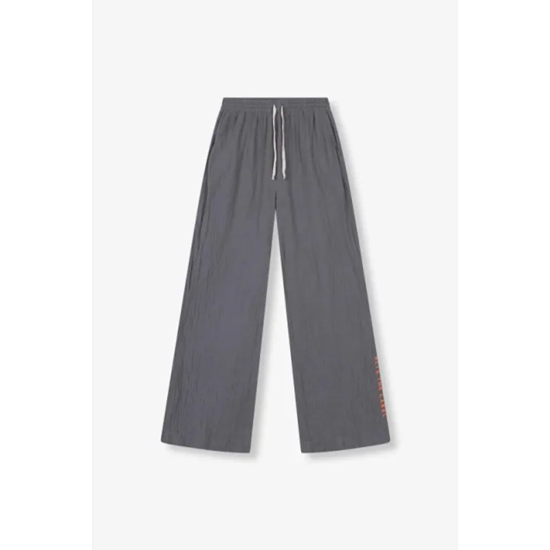 Wijde broek, gemaakt van zachte kreukstof van het merk Alix The Label. De broek heeft een "ALIX THE LABEL"-borduursel op het onderste deel van de pijp. Combineer met het bijpassende jasje voor een complete look. Stofsamenstelling: 100% katoen Pasvorm: valt normaal. Twijfel je over de maat? Neem contact met ons op en we helpen je graag verder!
