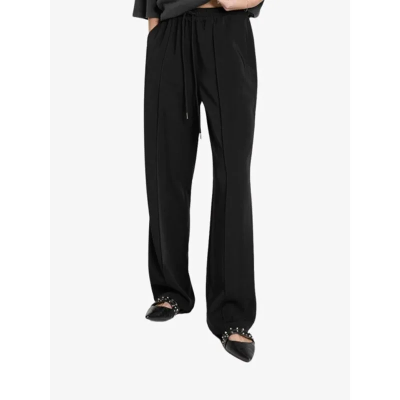 De Alix the Label Clean Sporty Broek in de kleur Zwart heeft een elastieke tailleband met aantrekkoorden, steekzakken en belijningen. De broek is een perfecte mix tussen chique en sporty.