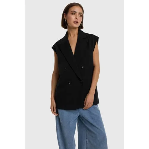 Geef je voorjaarslooks een stoere laag met dit zwarte Alix the Label gilet ds coat. De mouwloze blazer heeft een middel-lange lengte en een double breasted sluiting, waardoor het er verzorgd uitziet maar toch nonchalant oogt. De scherpe reverskraag en het gerafelde detail langs de randen geven net dat ruigere accent waar de Rebel-collectie om bekendstaat.Mouwloos gilet met statement details Middel-lange lengte, ideaal om over een T-shirt, blouse of jurkje te dragen Double breasted sluiting voor een krachtige, geklede look Reverskraag die het karakter van een blazer combineert met het gemak van een bodywarmer Borstzak als subtiele, nette finishing touch Gerafelde afwerking langs de randen voor een stoer, modern effect Gemaakt van een katoenrijke stof die stevig aanvoelt Valt normaal, kies je gebruikelijke maat Niet wassen en niet in de droogtrommel, lauw strijkbaar volgens waslabelStoer laagje voor het tussenseizoenDit gilet uit de lentecollectie is ideaal als extra laag op dagen dat een jas net te warm is. Over een eenvoudige top en je favoriete jeans of boven een rechte jurk, het geeft direct meer structuur en karakter aan je outfit.Alix the Label, uitgesproken maar draagbaarAlix the Label staat voor collecties met een duidelijke attitude, maar wel met items die makkelijk in het dagelijks leven te dragen zijn. Verwacht eigentijdse ontwerpen, herkenbare details en materialen die geschikt zijn voor alledaags gebruik, zodat je er verzorgd uitziet zonder dat het ingewikkeld wordt.Een gilet dat in één keer zorgt voor een krachtige, gelaagde look in je garderobe.